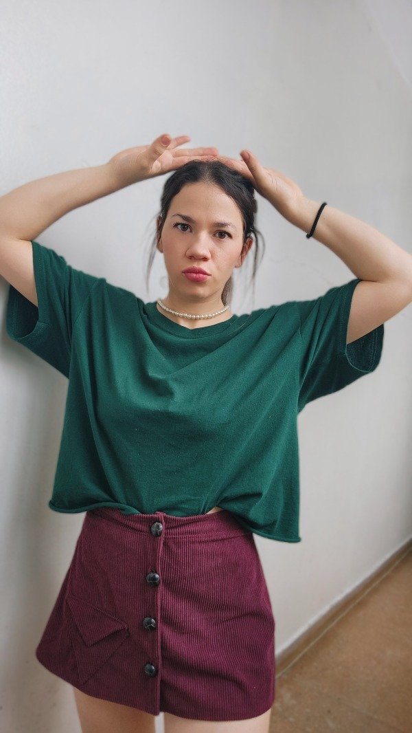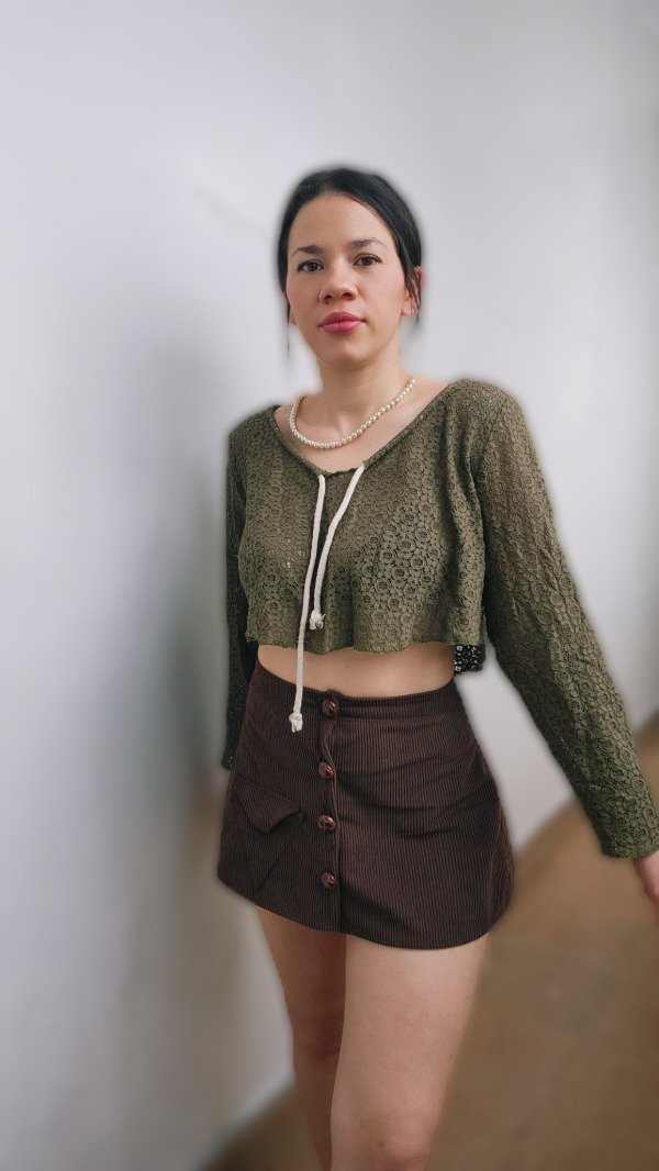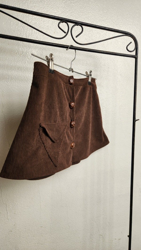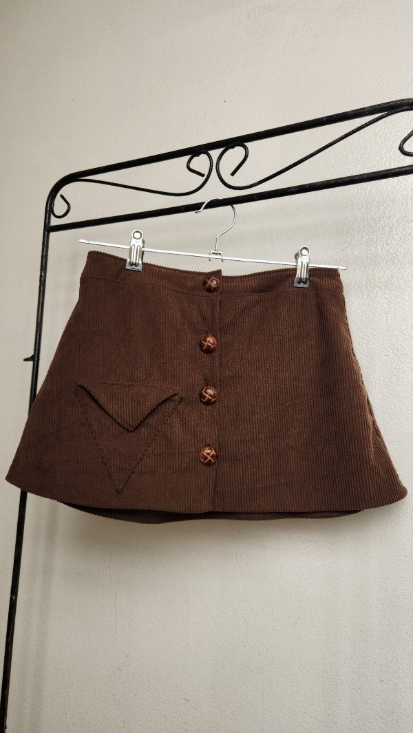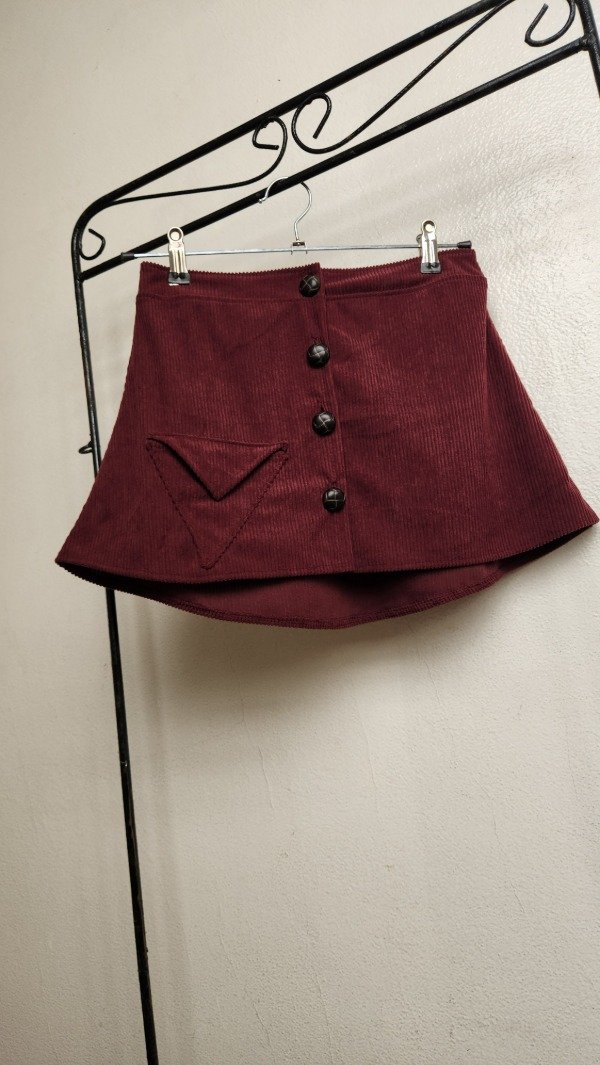 Mini Trifecta: Textura y Geometría Nuestra mini de corderoy es la pieza clave para un look con personalidad y aire vintage. Con un diseño pensado en los detalles, la Trifecta destaca por su frente de cuatro botones y un bolsillo triangular único que le da ese toque distintivo y moderno.