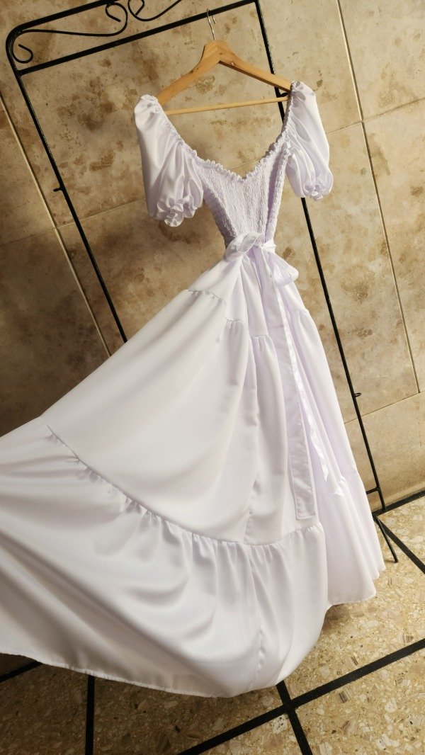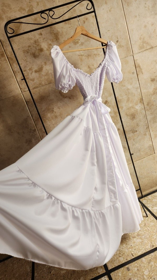 Deslumbra en tu próximo evento con una pieza diseñada para la sofisticación máxima. Este vestido largo, confeccionado en seda de alta calidad, ofrece una caída fluida y un brillo sutil que captura la luz de manera espectacular. Su diseño en color blanco puro lo convierte en la elección predilecta para novias civiles, segundos cambios o eventos de etiqueta.Ideal para: