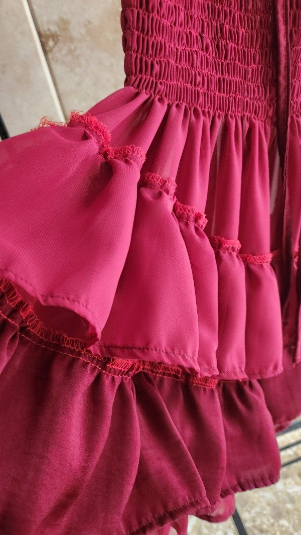 • Diseño: Cuerpo drapeado y terminación en volados.