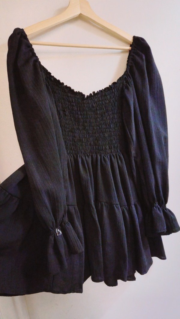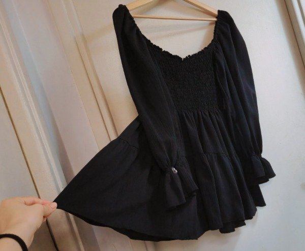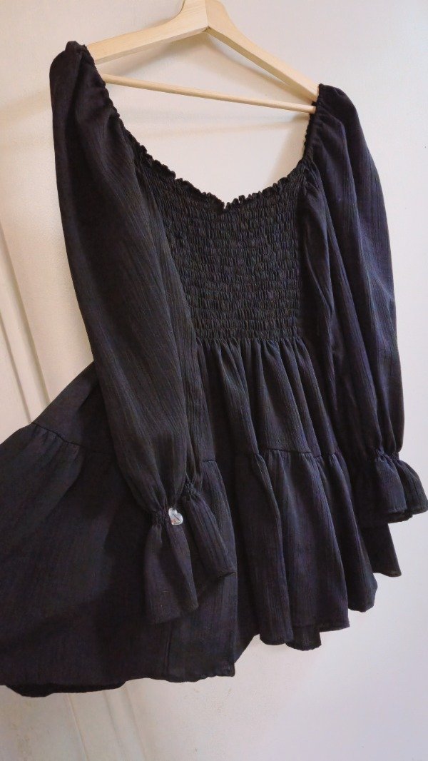 El equilibrio perfecto entre el misterio y la delicadeza. Nuestra versión en negro del clásico vestido corto de bambula llega con un diseño renovado. Con un escote corazón que enmarca el busto con elegancia y mangas largas livianas, es esa prenda que te resuelve cualquier look de noche con un aire sofisticado y relajado.